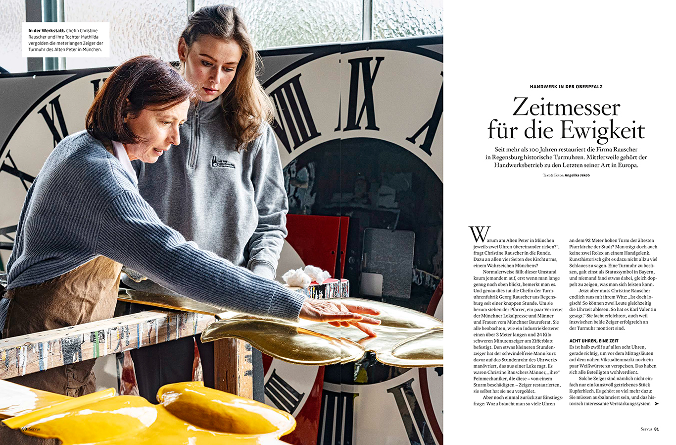 Georg Rauscher founded the company in 1920, followed by Georg two and Georg three. Currently the three daughters of Georg three run the company. Granddaughter Mathilda will one day be the fifth generation to take over. The work never stops: Tower clocks are ticking all over the Alps. Not all have been restored yet.